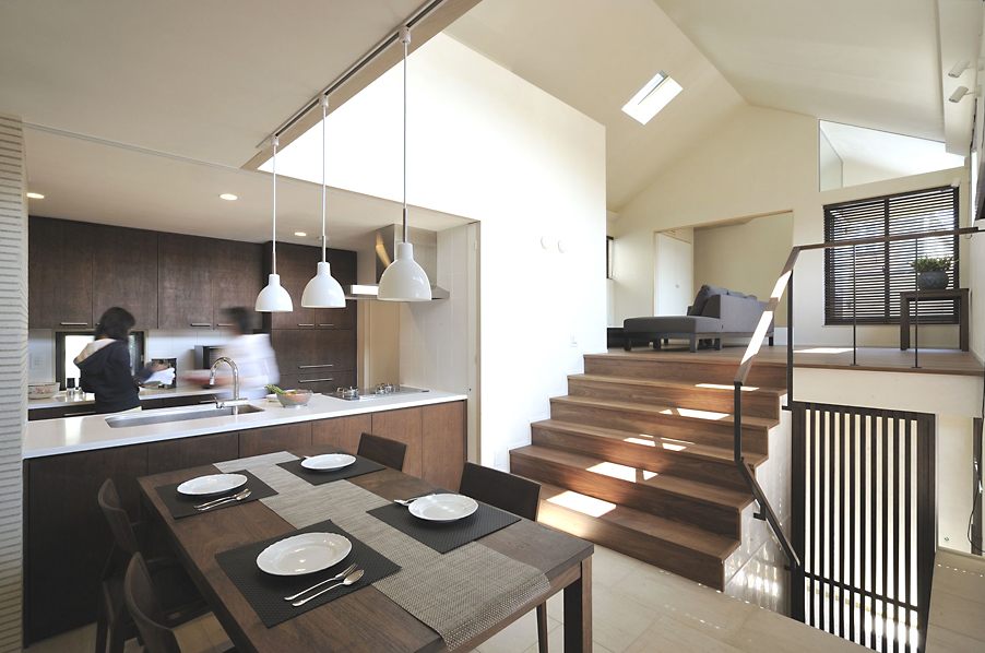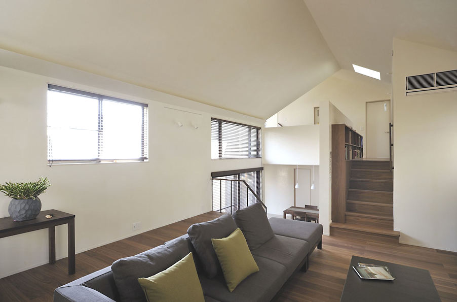 スキップフロアーの階段から見下ろす。