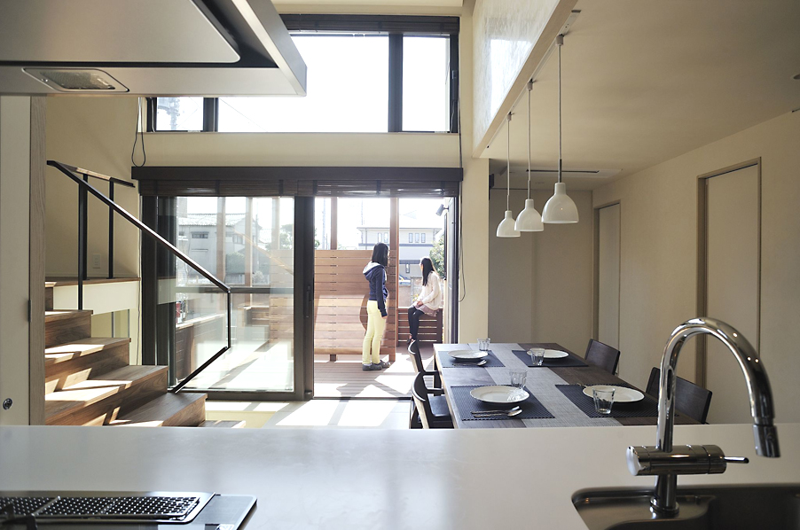 キッチンから南のデッキテラスを望む