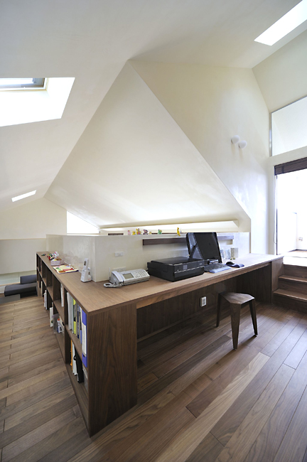家具で仕切るフレキシブルな空間。個室から小屋裏収納につなる。