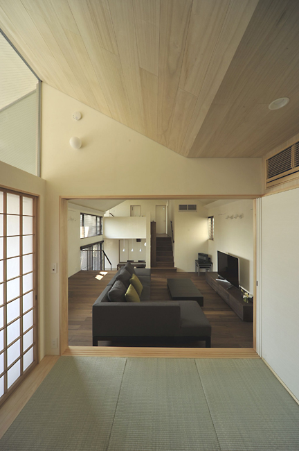 家型の天井でテラスにつながる。