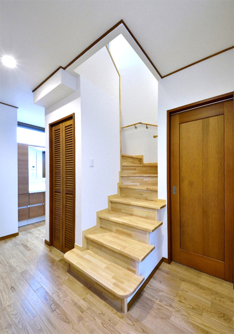 小屋裏収納への常設階段も設置し、空間を無駄にしないお部屋作りをしました。