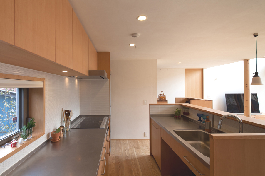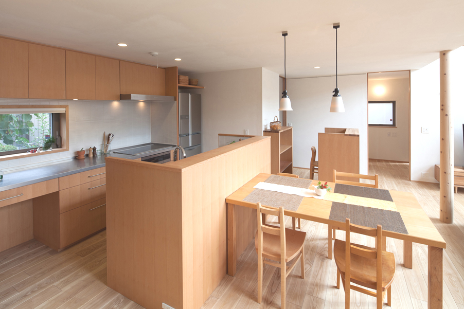 冬は吹抜けを通し北側キッチンまで陽が届き、明るく暖かい。